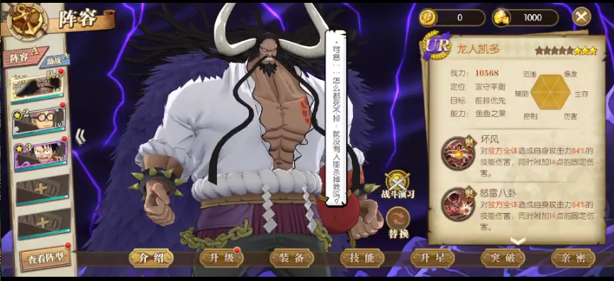 昨晚还怀疑UR卡会不会是10颗星的,看到面板公开,龙人凯多依然是8星,培养压力就看活动所能赠送的碎片多少。