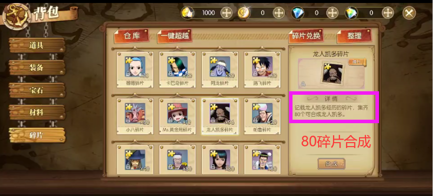 凯多的合成要求:80个碎片合成出3星龙人凯多。