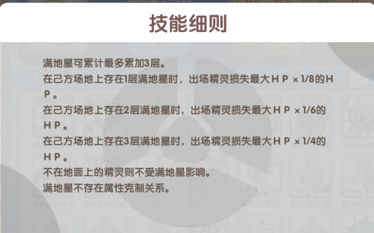 ①:如果对战场上有重力状态,飞行属性和漂浮特性的宠物是可以受到满地星和毒尖钉的伤害(且漂浮特性的毒属性宠物和飞行毒属性的宠物,可以解除毒尖钉)