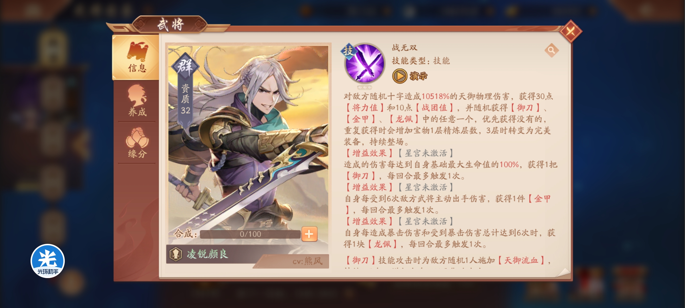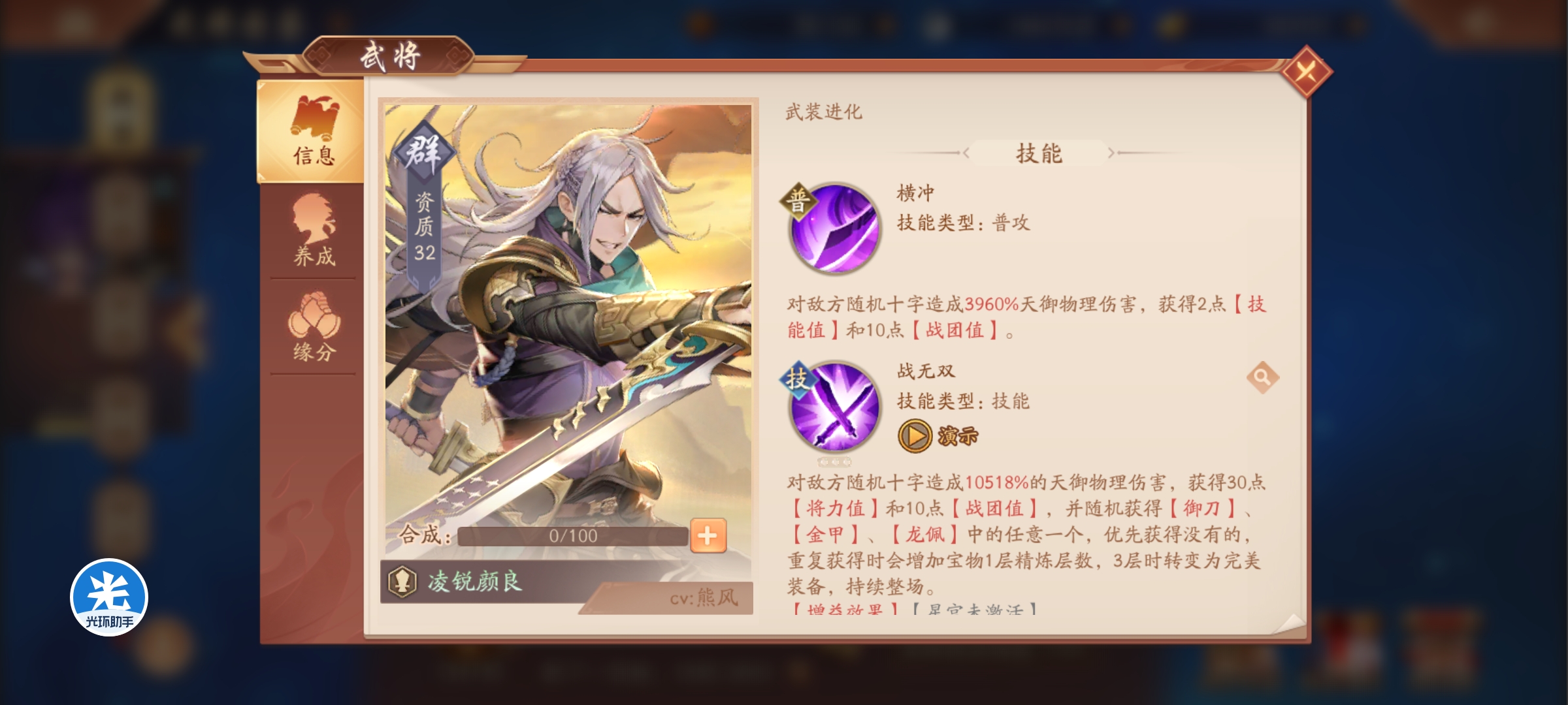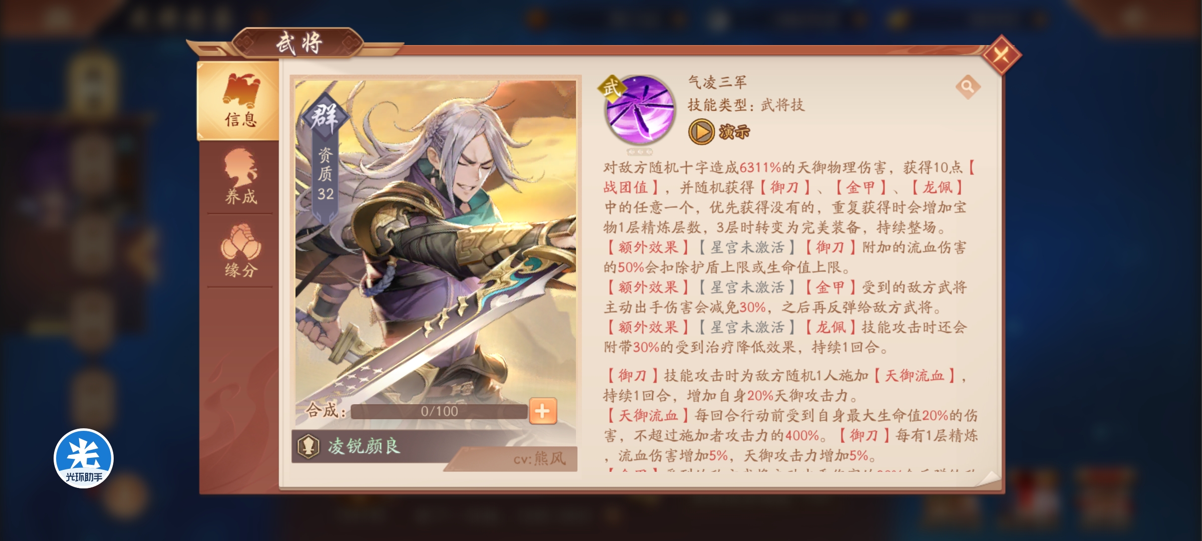 大家好,我是天池太子。终于说到了群星凌锐颜良,策划又开启了小作文形式,看都给看晕了。颜良有三个装备,可以进化,持续整场。从配置上看,就赢在了起跑线上啊。