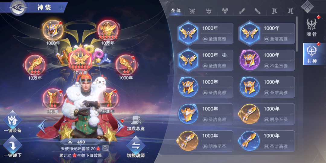 接着是魂师的神装部分,这部分其实也会对星级、等级等因素有一定的要求,不过目前大部分玩家在这部分没有很好的基础,所以这里简单提一两句即可,按照维*左右战力的评分来说,一个6星部分神装对比1星神装可以带来的战力提升大概在20万出头,这点差距大家也可以参考一下,另外神装的等级提升其实对整体的战力影响并不大,主要还是为了提升神位亲和度来激活对应的神位技能效果。