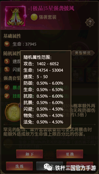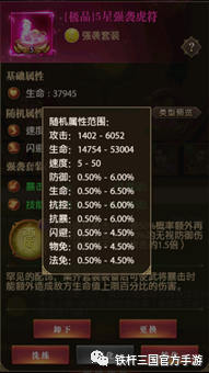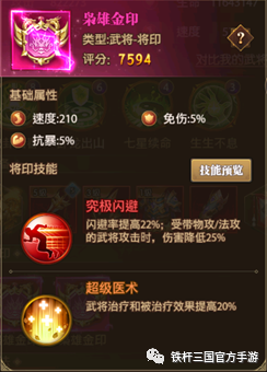 关于配饰的选择,因为关羽主打输出位置我们需要在把闪避率提上去的同时并保持输出能力,所以就需要选择强袭配饰来増加输出能力,同时5级配饰的虎符和披风配饰每个可获得4.5%的闪避,两个配饰总共能获得9%的闪避率。