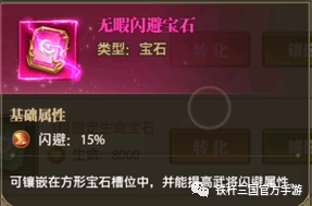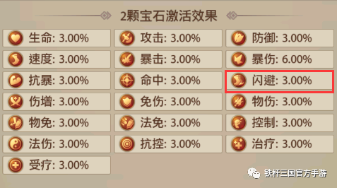 然后是以宝石的技能,宝石升级到6级后会开放2颗宝石效果基础属性加成,因为我们是走闪避流的所以优先选择闪避3%。