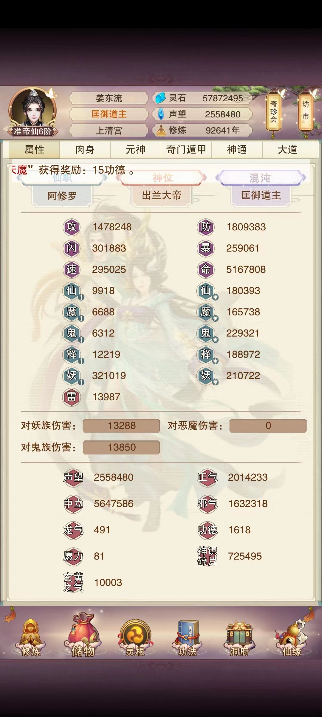 4、前段说了,要对资源进行合理的配置。暴击率属实是一种后期性价比极高的资源属性。暴击率同年份基本都差不多,怎么提升呢?1-9凡品的暴击丹一定要吃完,还有就是优先吃仙二品和仙三品的暴击丹。仙二品暴击丹800功德,每颗消耗400醉龙草、999何首乌,可以吃200颗,每颗增加110属性。仙三品暴击丹900功德,每颗消耗600醉龙草、999血精草,可以吃300颗,每颗增加120属性。仙二仙三共获得暴击属性:58000,消耗1700功德,炼丹草药都是简单易得道童高额输出的成本忽略不计还可以清库存。仙一品暴击丹等浑天、洗髓、体魄吃完了后再去炼,因为需要清灵草。