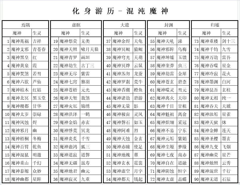 第二化身游历时,每探索4次遭遇一个混沌魔神,以第二化身属性斩灭后可以找特定的的混沌生灵领取属性丹药。(攻防血真伤真防)