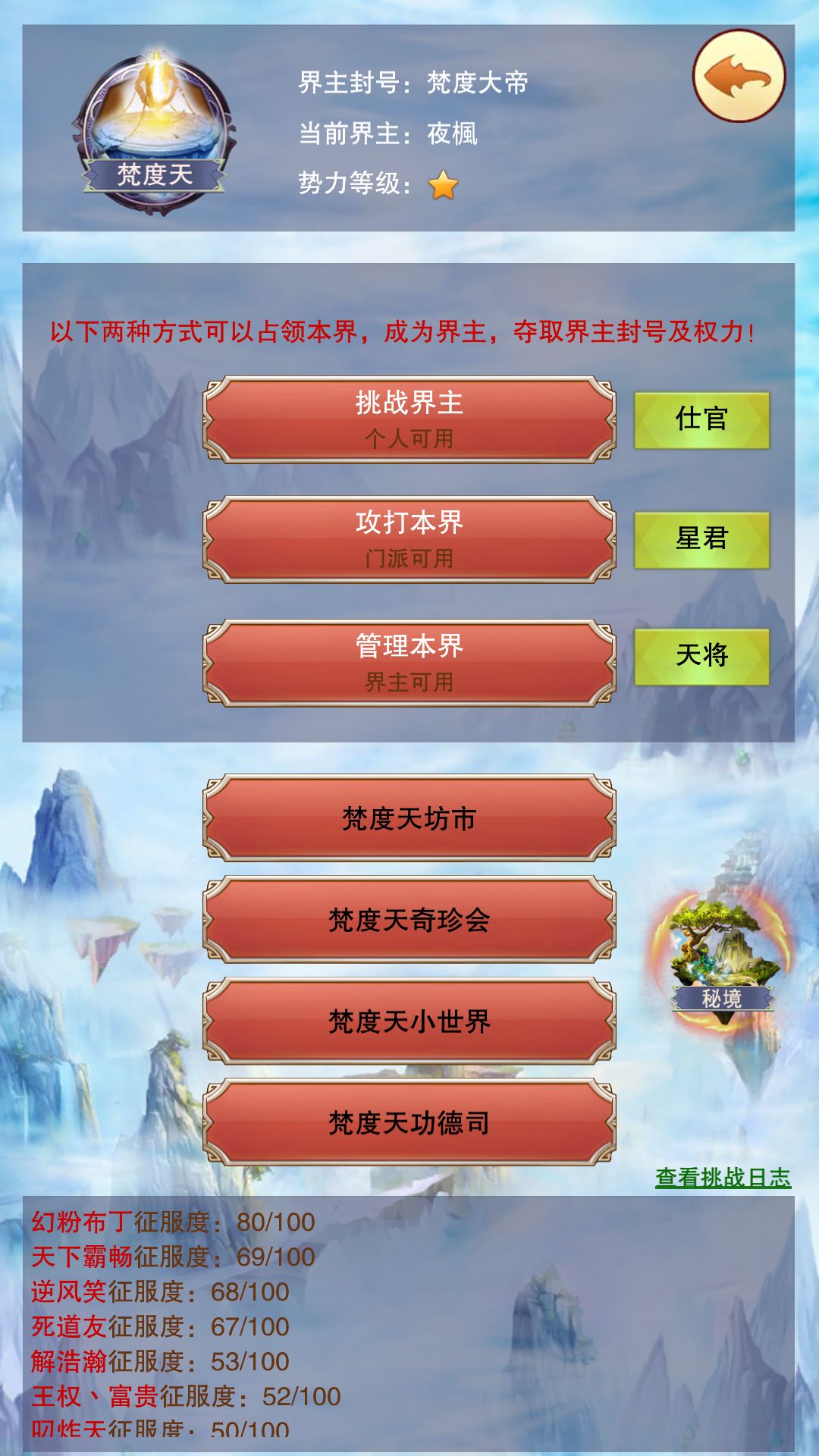 第二化身游历时,每探索4次后再探索4次发现一个先天之域,以本尊属性击败魔神即可占领此位置并每天获得该位置产出的混沌灵气。