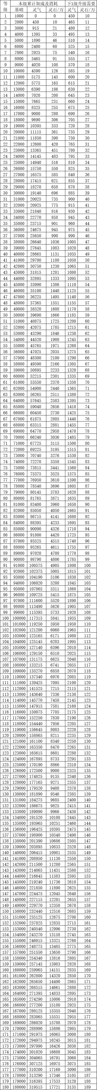 ios已经更新三天了,从姚版主那里我暂时确认了,混沌池【运转2.5小时】初始1级为30%、1000修炼,以1级初始450混沌灵气、10万灵石为基础。1-4级每递增1级多15混沌灵气、1万灵石需求,每递增1级多1000修炼。
