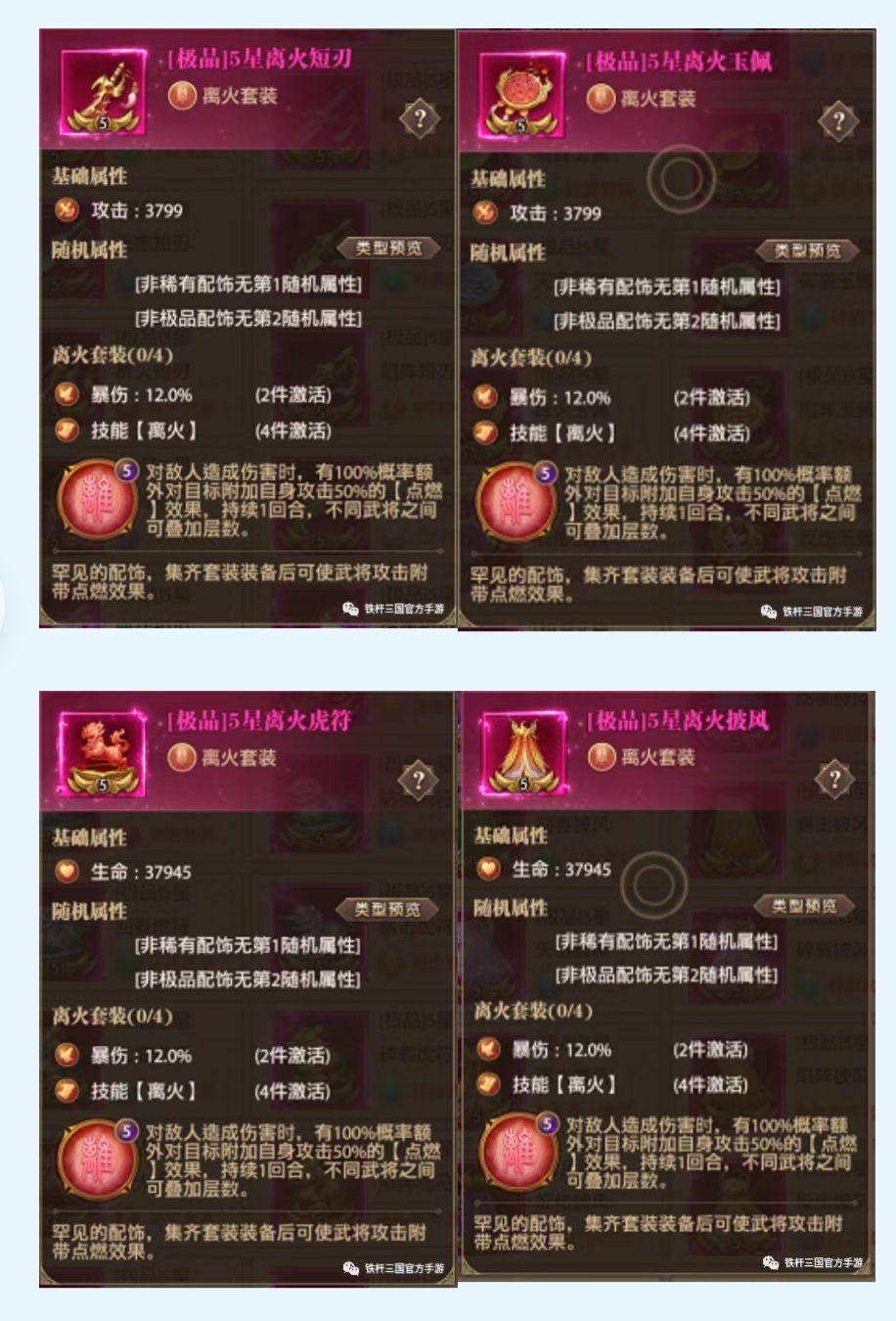配饰小编推荐离火套装, 配合孙权技能附带的效果,打出最高伤害。