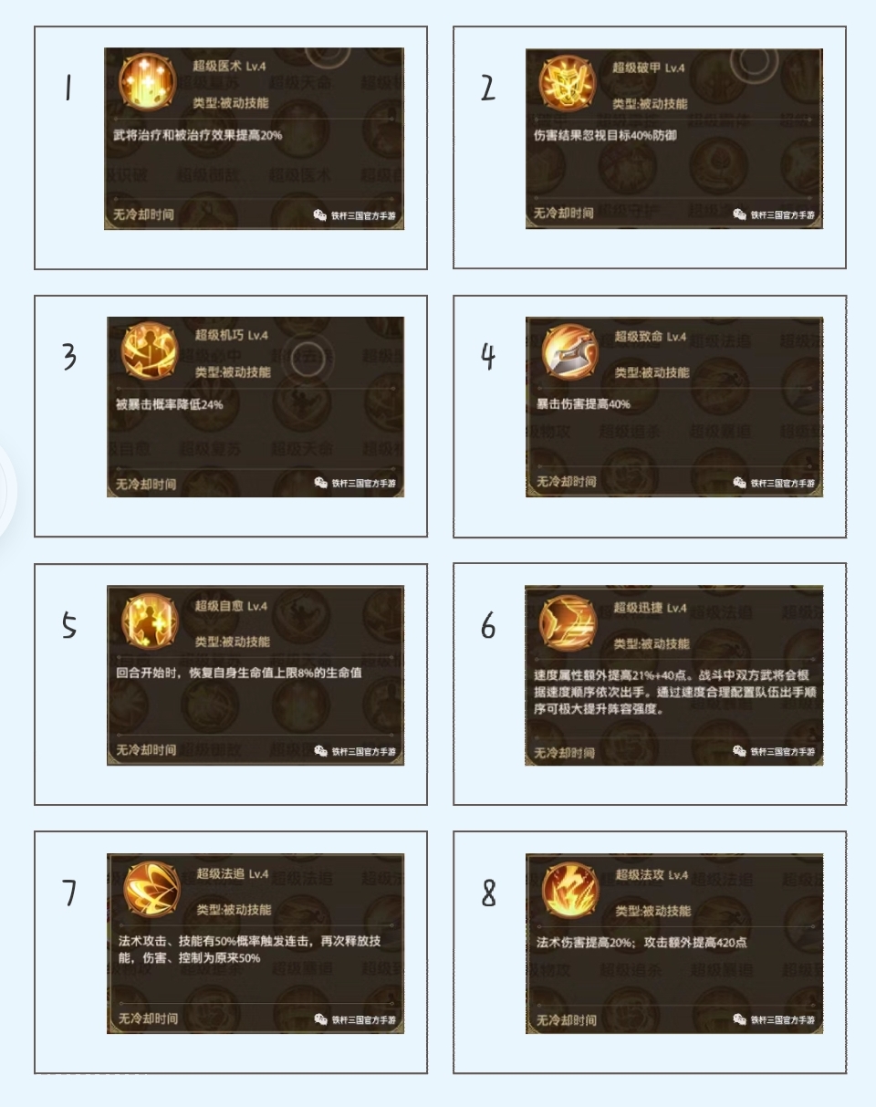 战法推荐致命、破甲、机巧和医术;将印技能推荐迅捷、法攻、法追和自愈等,大大的提高了孙权的输出和生存能力