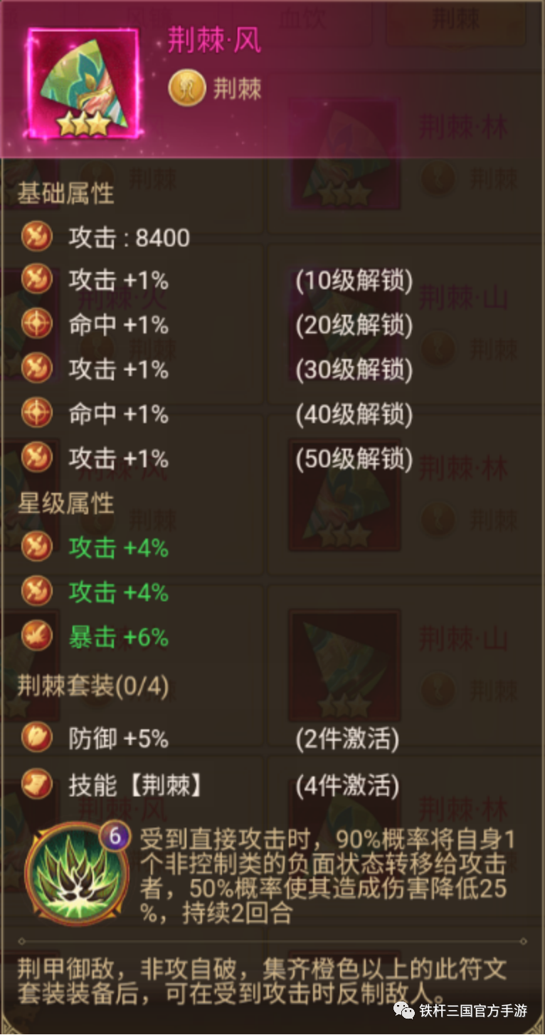 符文推荐使用“荆棘”,该符文能将自身的1个非控制负面效果转移给攻击者,且有几率降低其伤害。