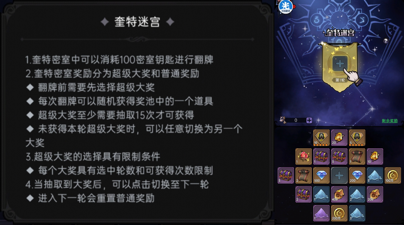 “奎特密室”活动形式与新版“仙境迷踪”玩法一致,同样可以参考“仙境迷踪”活动