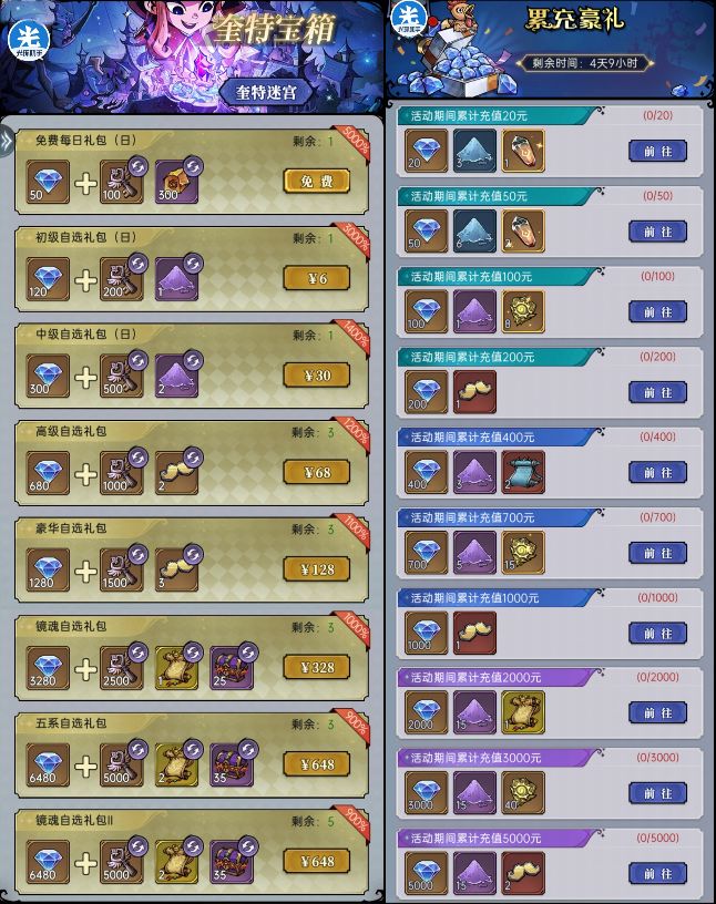 在目前版本中,快乐国/奎特密室+累充活动成为大型氪金活动,是氪佬和微氪平民拉开差距最大的资源点,非重氪收效甚微!