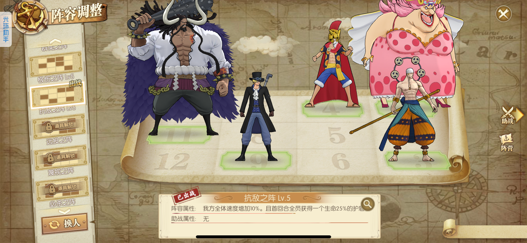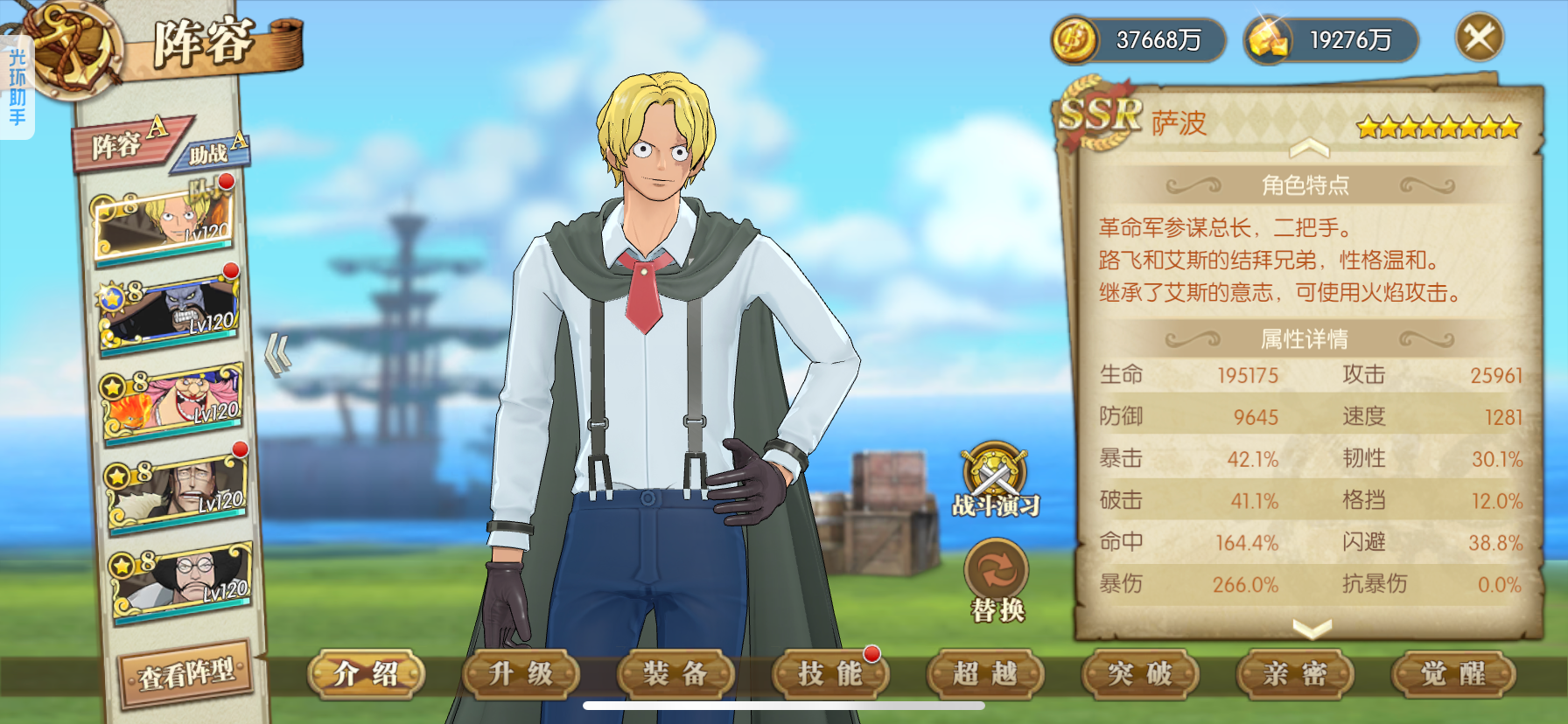 解读:萨博的烈焰效果核心是给萨博、艾斯/路飞提高攻防效果,如果路飞/艾斯战败能给萨博提升速度与暴击。上阵路飞/艾斯为萨博提供高速出手的机会。