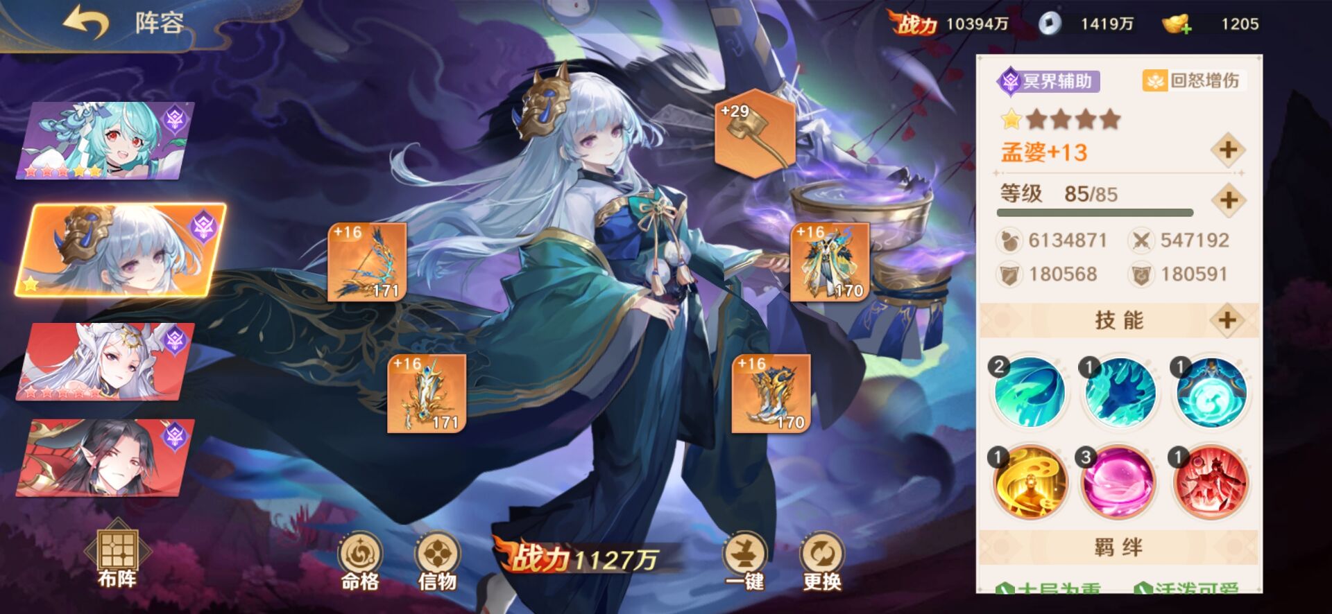 进入正题。游戏一开始,会出现四个阵营的选项,可千万不要小看这个选项,在这款游戏里主角不仅充当了我们前期的主力输出,也担任起了工具人的职责,给我们提供了不俗的羁绊效果,可以说是非常之重要。当然,阵容是可以转换的,如果你抽到的大多是冥,可你选择的是仙,这个时候只需使用道具孟婆汤,便可以重新选择主角。