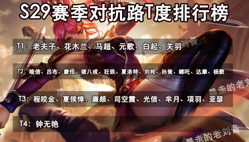 T1:老夫子、花木兰、马超、元歌、白起、关羽