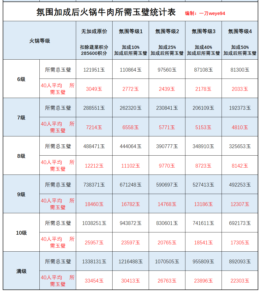 上次算加成40%,去了蔬菜,40人平均不到1.8w玉璧