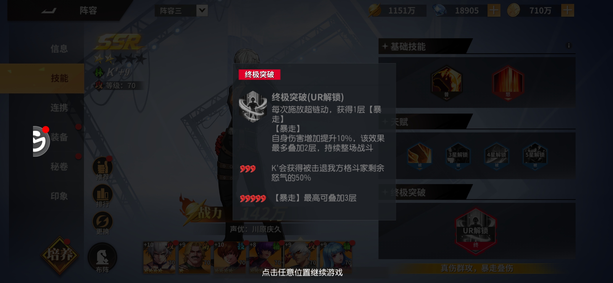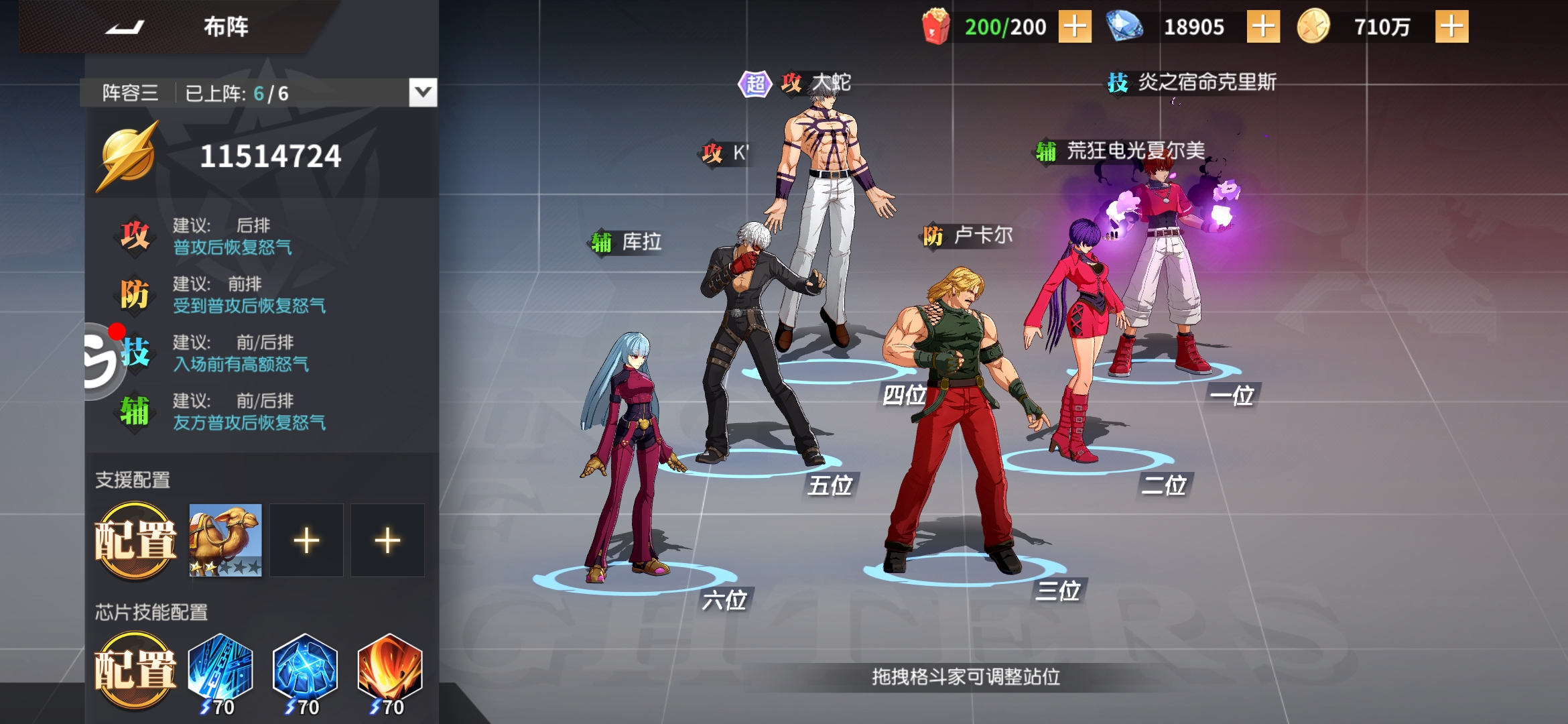 第二、三个英雄我们选择K和库拉组合。这里分析一下原因,K的最大优势有两点:高攻真伤和继承怒气。很多人会忽视第二点,但是这个第二点正是K能完美融入大蛇体系的原因所在。