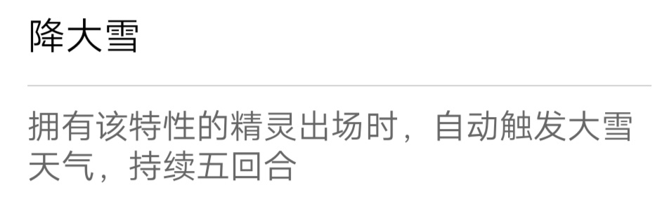 天气队首先要素就是天气宠,而雪天队是要大雪天的天气,释放大雪天的方式有两种,一种是特性降大雪直接触发。