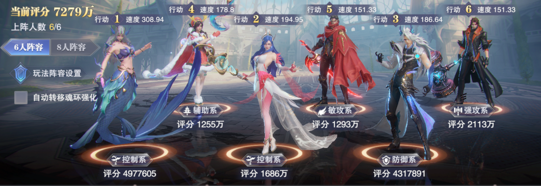 有关唐晨赐福队的行动顺序大家可以参考上图,特别需要注意的就是海马的速度需要慢于波赛西一点即可,另外维一的海魔女速度那么快的原因是我没有10万年的暴伤魂环,所以只能暂时用10万年的速度魂环替代,如此而已。