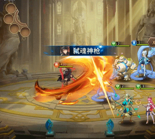 哪吒挥舞火尖枪,对进行连续斩击;同时对敌人的肉体和灵魂造成圣火灼烧。