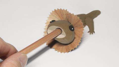 设计师 ミチル 设计的铅笔刀新品“伞蜥铅笔刀”,需要实际使用起来才能变成完全体。