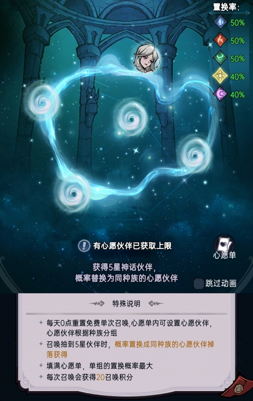 2.每日抽取心愿英雄后,该系心愿英雄概率下调一半