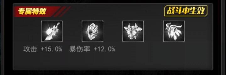 ,持续15回合。 (<终极之力>:攻击力/暴击/破挡/命中+10)