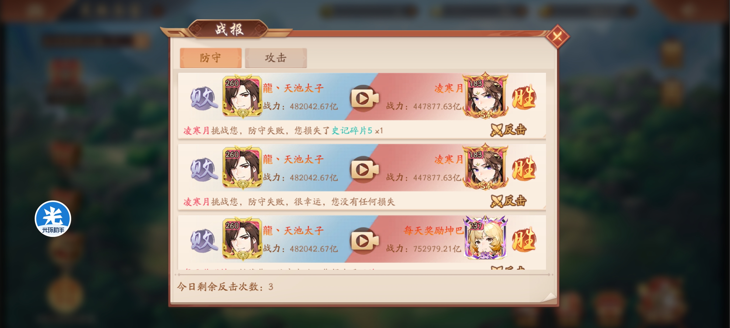 每天有5次掠夺次数,和3次反击次数。失败也会扣除次数,反击也会扣除次数,掠夺碎片的概率非常低,我被抢了7次没了一个碎片,进入几个小时的保护状态。贵族9才能买次数,也就是说白嫖只能挨打,一天可以被抢好几个碎片。等于我们全是氪老的碎片仓库。