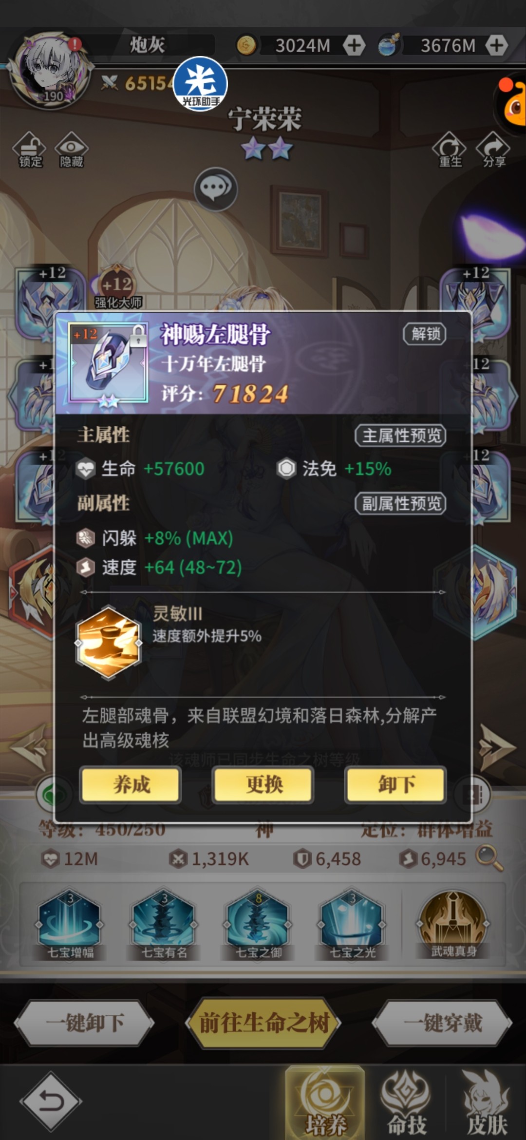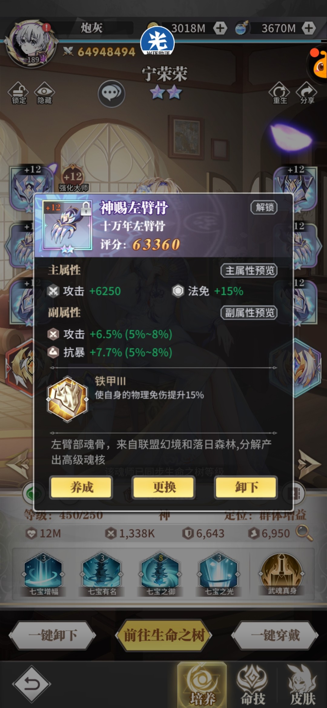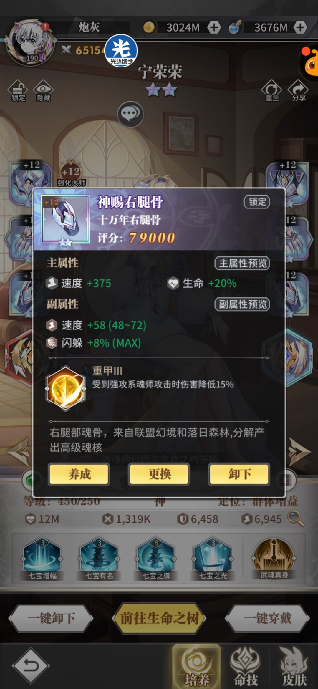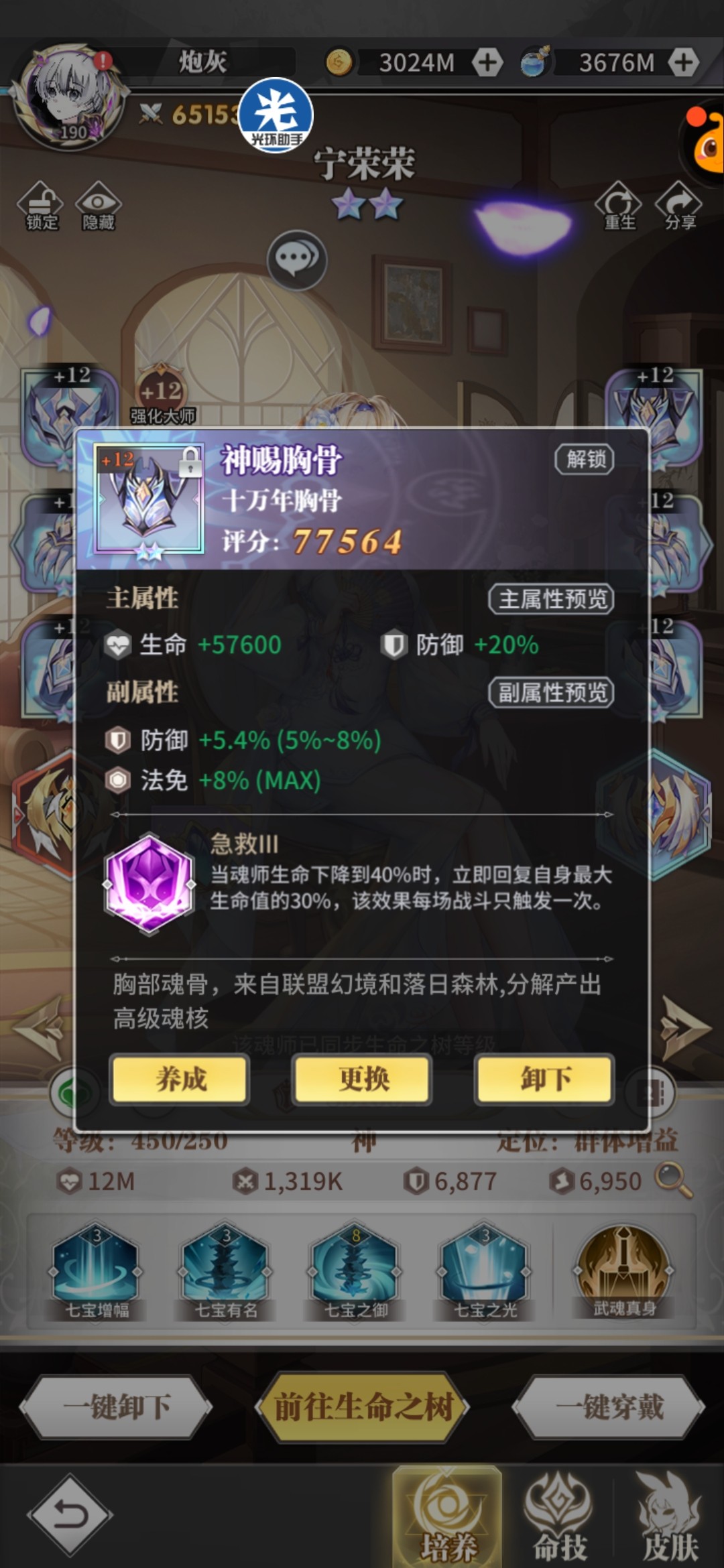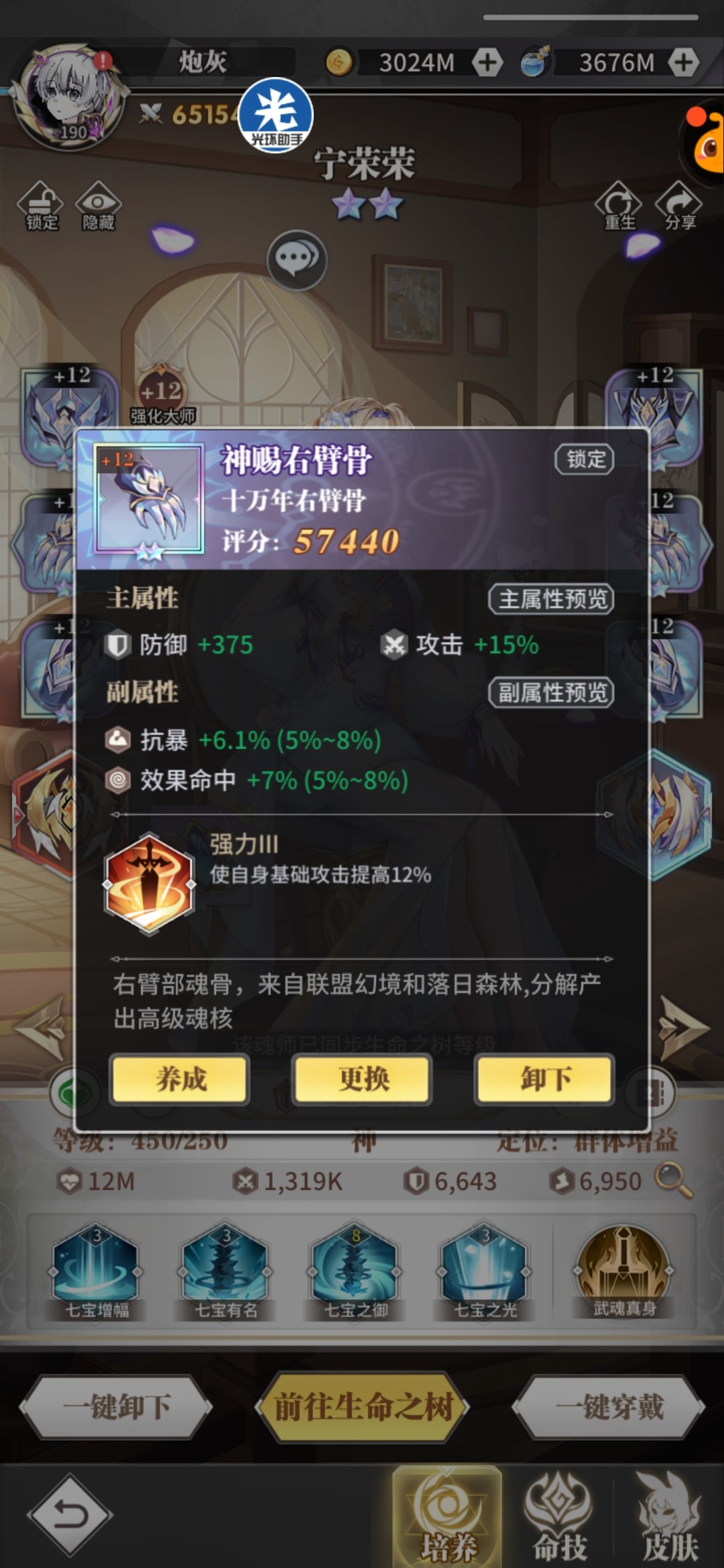 头骨:荣光/反震,副属性攻击百分比+攻击值,荣荣持续治疗量和复活血量都跟攻击相关。