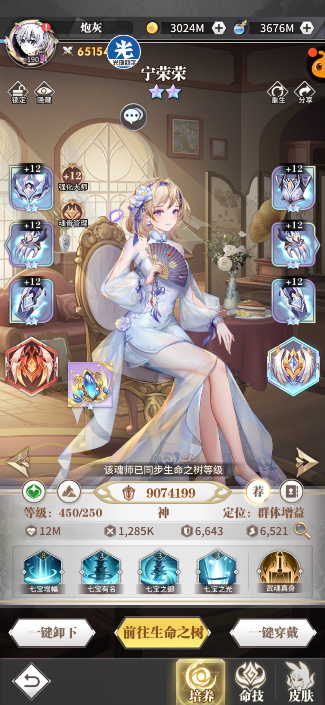 宁荣荣作为土系唯一增益辅助,从开服到现在一直比较好用,解控锁血、双增益、自保能力都非常强,成神后两回合无敌,除非被驱散,非常克制单体指向性输出,缺点速度慢奶小,而且该魂师对魂骨要求不高,宁荣荣调全队最低生命对断刃修罗小舞、白鹤等单体爆发输出克制得很厉害。