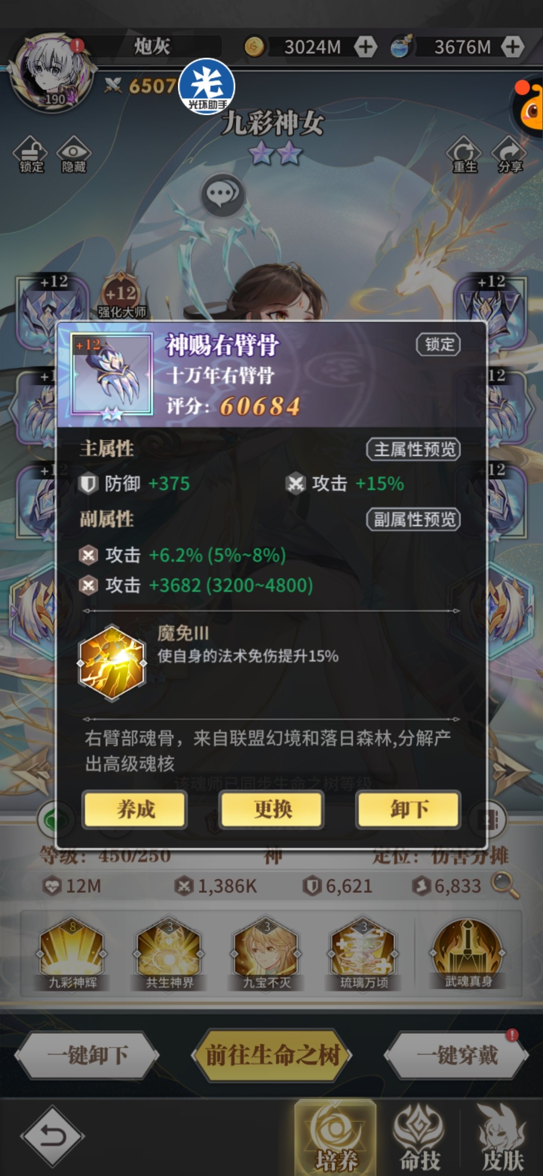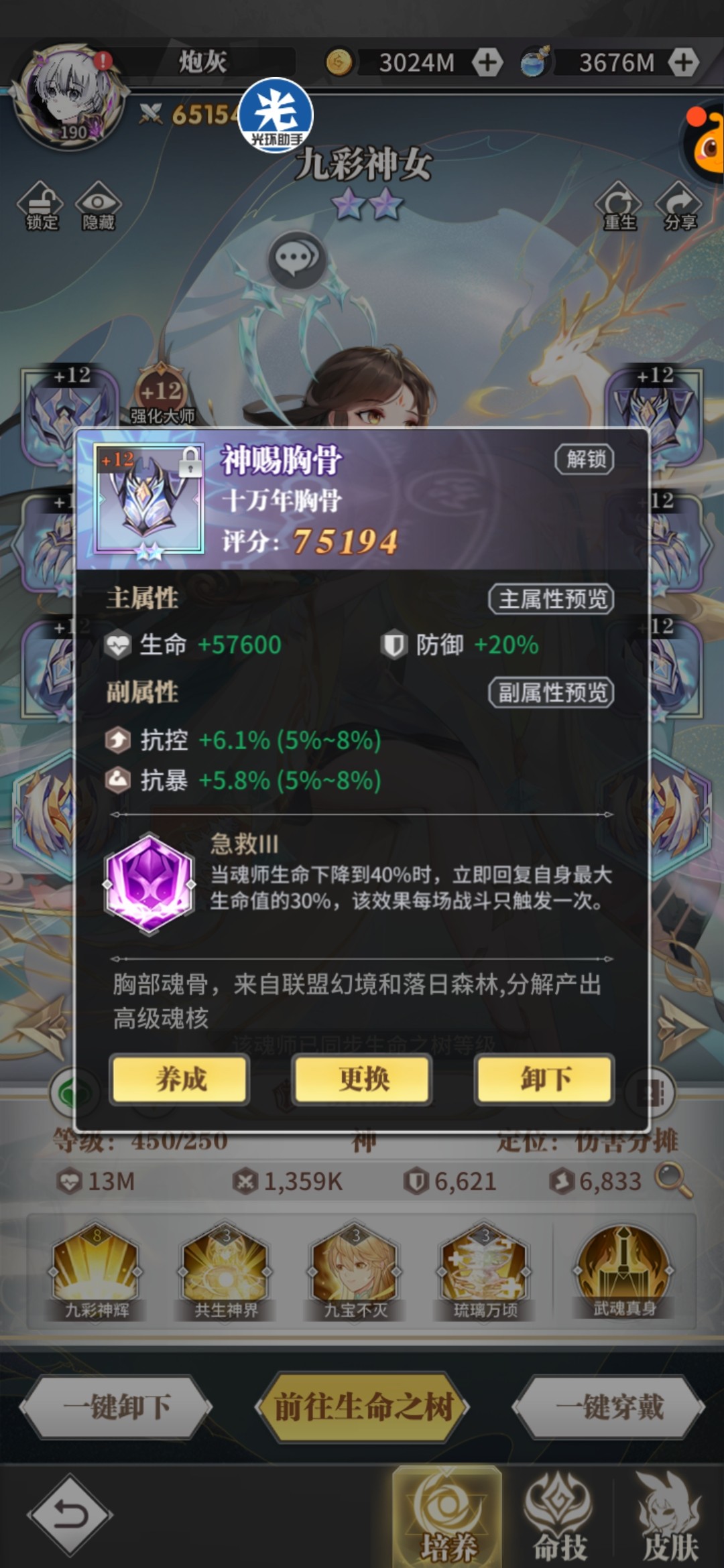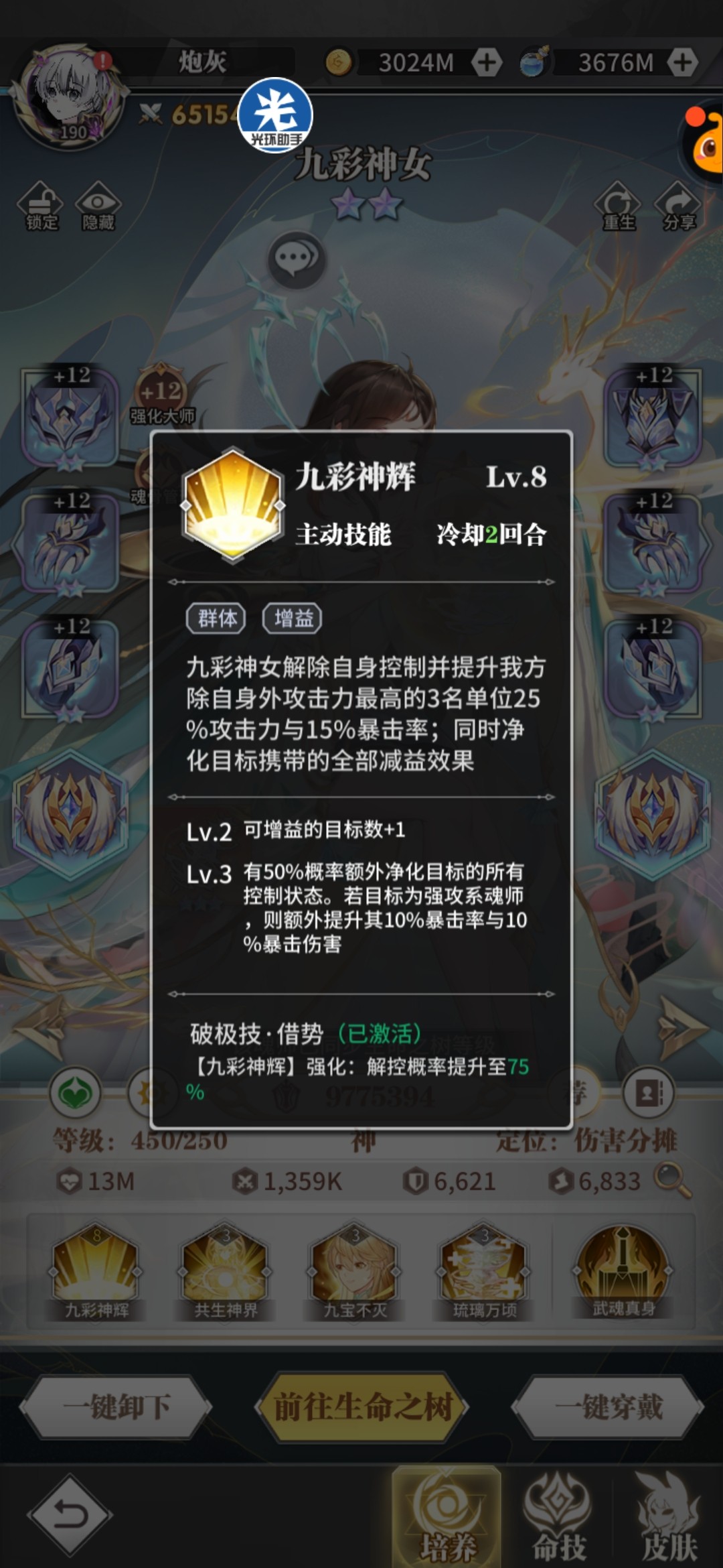 九彩神女自去年9月份与食神出世后,一技能免控解控解负面和强力的增益效果,二技能全体分担伤害罩子,被动增加队友生命,不管是低星的还是高星的都收到大家一直好评,可以说三个冠军赛队伍任何一个队都离不开九彩辅助,有九彩跟没有九彩是两个强度,再加上九彩对魂骨要求也并不高。