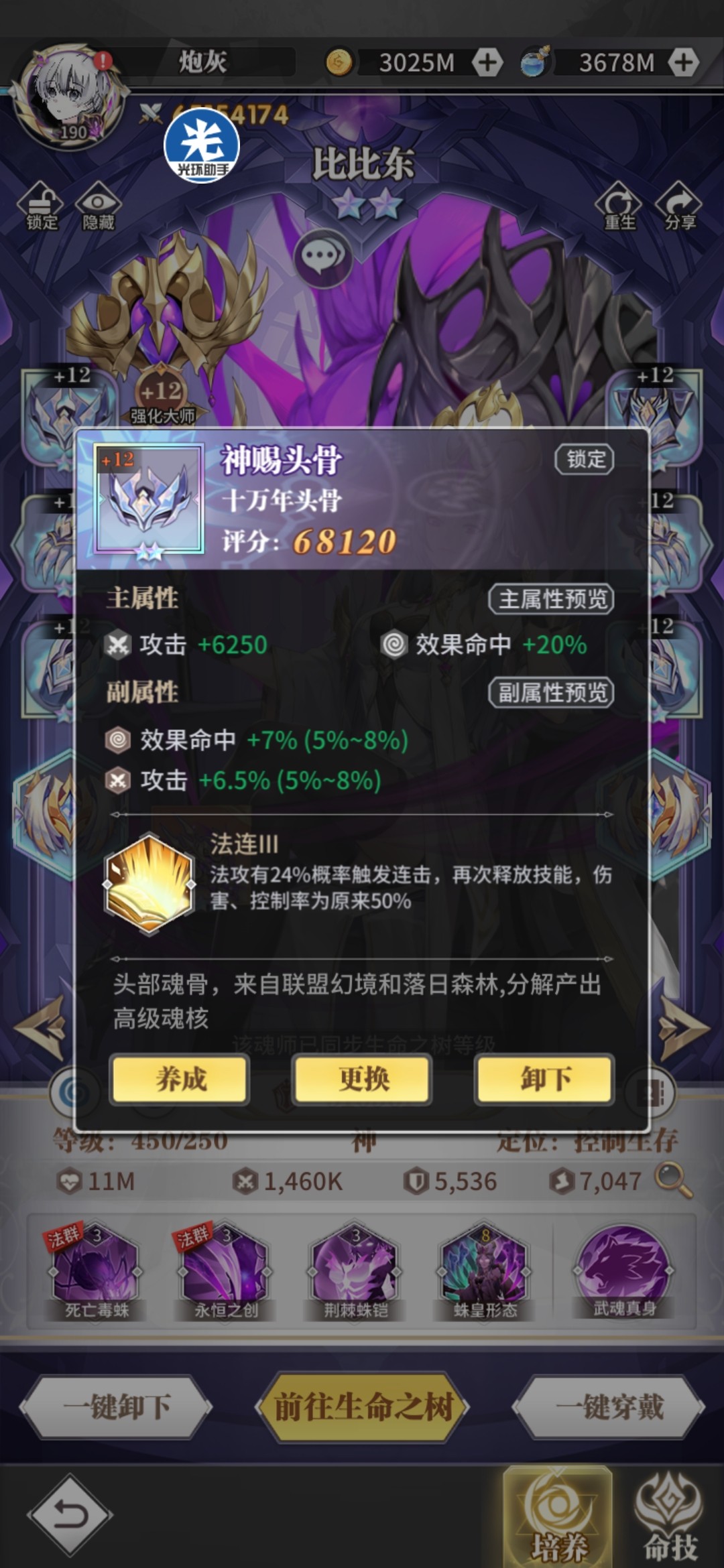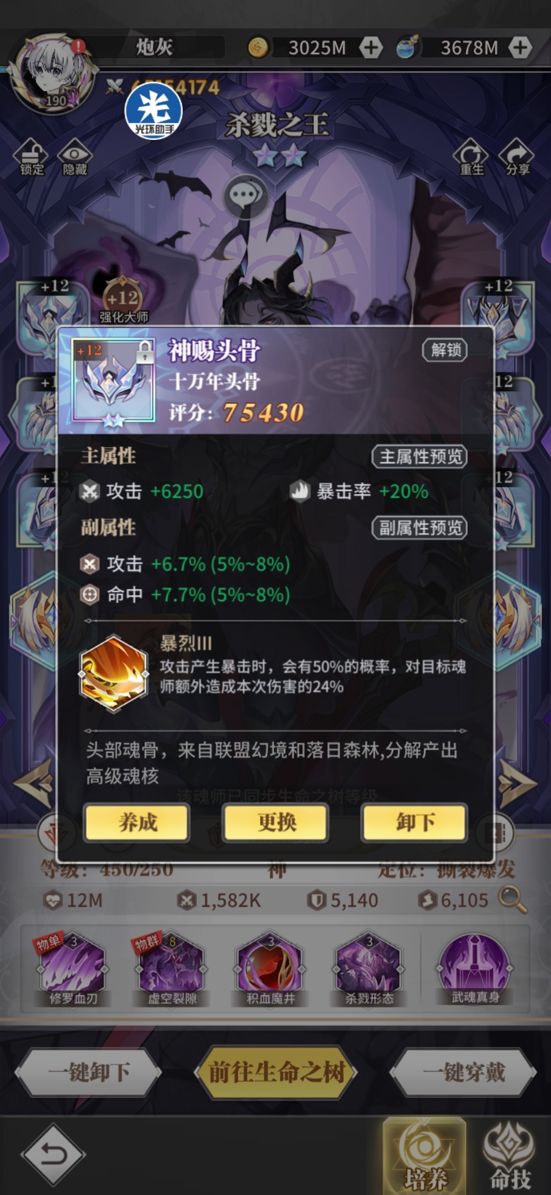 头骨:暴烈,副属性攻击百分比+命中百分比,唐晨技能附加伤害跟攻击百分比关系很大,所以攻击百分比非常重要,命中建议达标130-140。