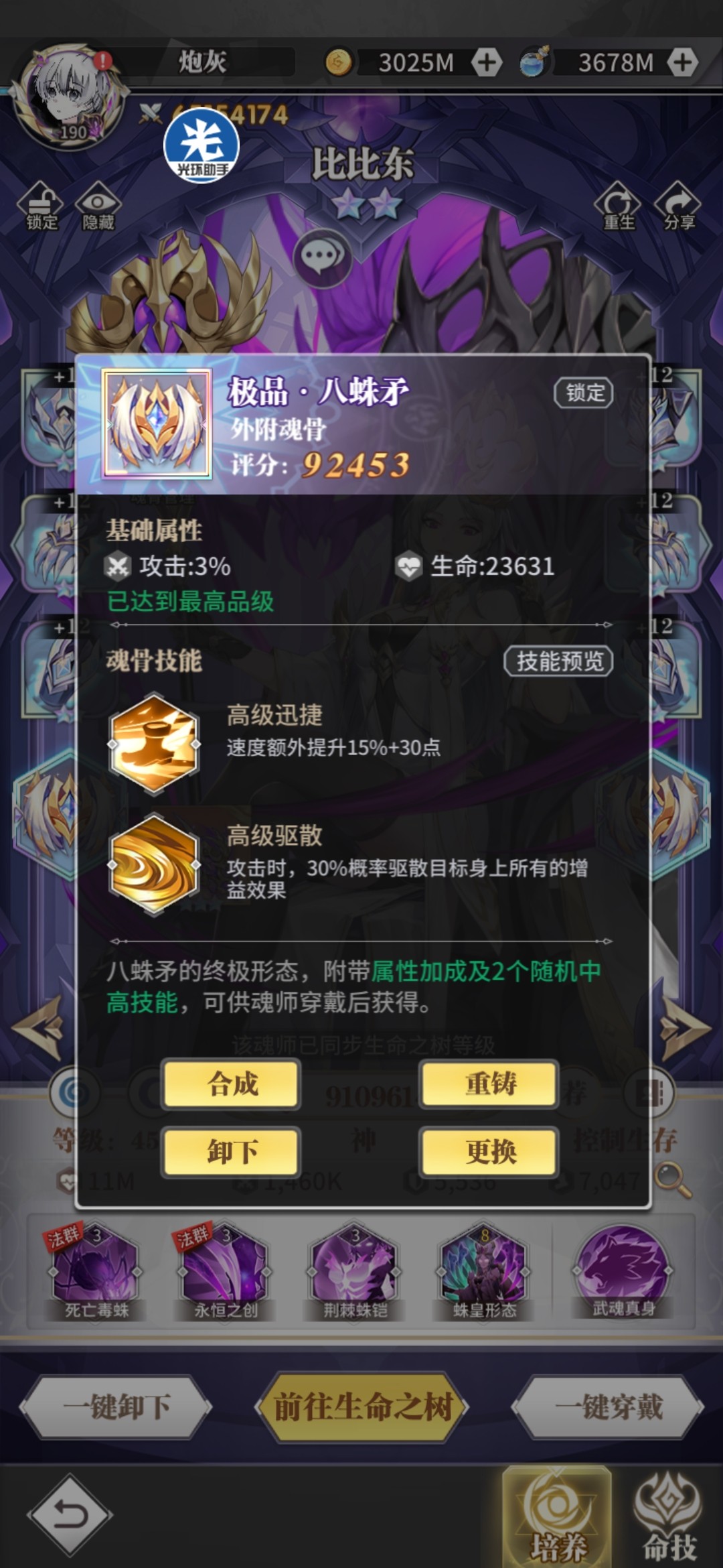 比比东暗系控制魂师,也是减益魂师,拥有两条命互相转换,强大的生存能力,大量的免伤,一技能减益必定命中加上二技能独有的创伤锁血技能,创伤不算控制不能解除,这就是该魂师独有的体制,比比东越到后期越强力,残局更是不死存在,可以说是百搭万金油,配合老毒物剧毒流也非常好使,作为暗系第一个第二代新魂师一直强到现在。