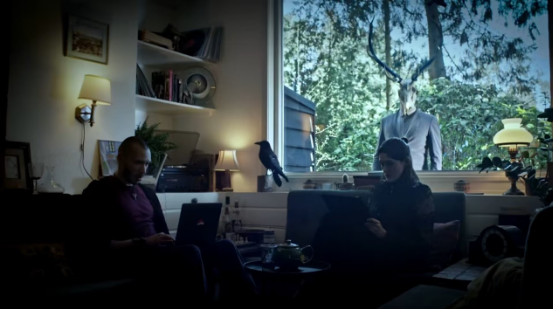 (这副图构图非常有趣,站在阳光里的鹿,黑暗蒙住的二人,在唯二灯光下的乌鸦,鹿在宗教作为温顺的象征,却与觉醒后残暴的男人Albert联系起来,在这里执子的两人不知会有什么样的命运,而幕后黑手,乌鸦先生则站在屋内的光里注视着这一切)