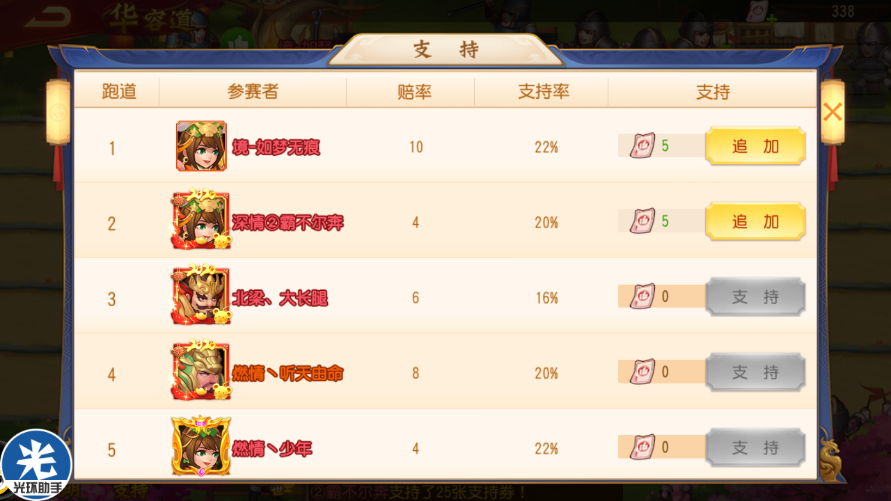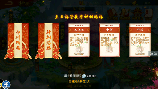 这只是没有乾坤的玩法,在后期神树5阶后,有机会通过祈福抽签获得乾坤一掷的签,在华容道一次追加25票支持卷的机会。