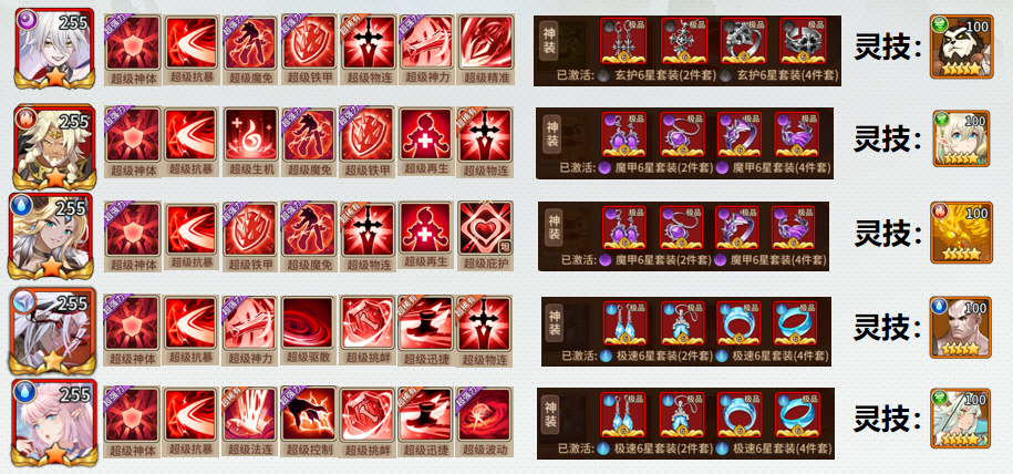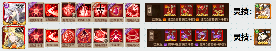 这个组合是忒弥斯改版以后兴起的组合,冥牙芬尼尔的技能机制使其对暴击率的依赖较高,但是在当前版本全员神体抗暴的环境下,导致其携带狂暴符文的收益较低。忒弥斯三技能降低敌方抗暴的debuff能让冥牙芬尼尔对敌的暴击概率大幅度提升,而且其携带娜迦灵技也能及时补充暴击率,完全不惧敌方的各类驱散技能,刀刀暴击不是梦。