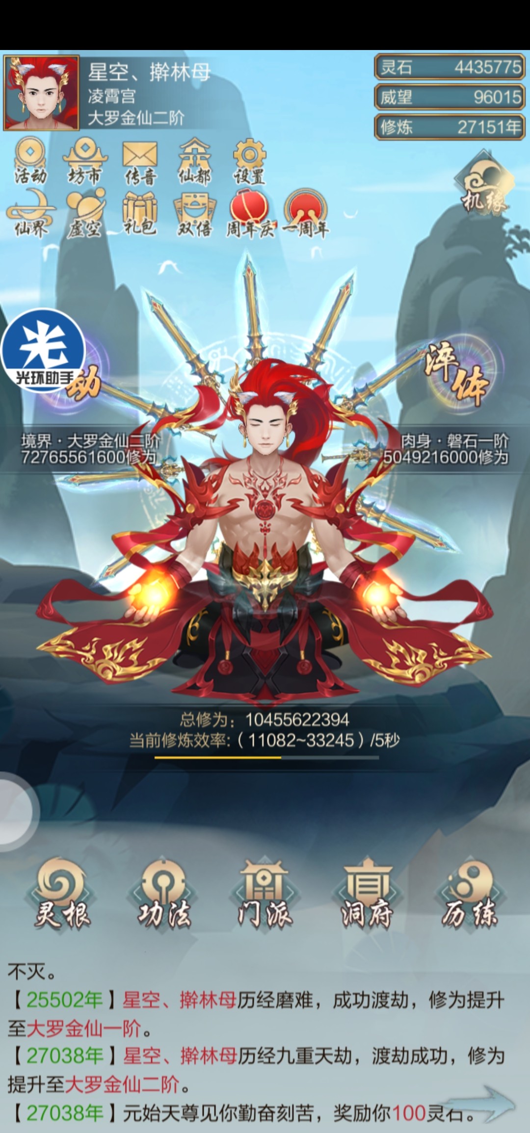 功德:功德用于仙界购买功法、道书、渡劫丹方(不推荐)、参天造化露、天通令、坐骑、道使、绝学,开仙猎2次。