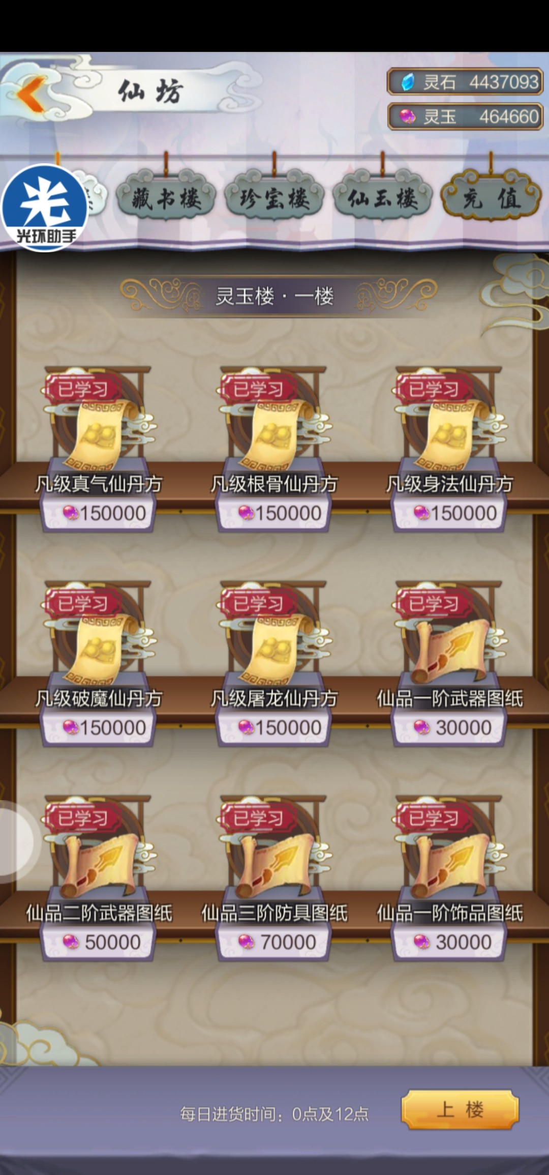 灵玉:是用于仙坊灵玉楼购买仙1-9装备图纸、凡/黄伤害以及属性丹方、道书
