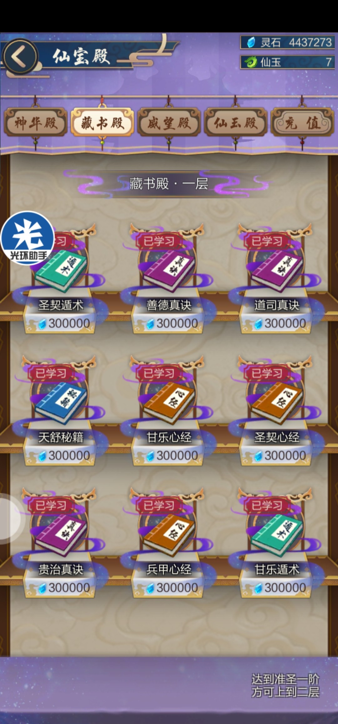 使用:功法优先哦(真决>秘籍>遁术>心经)藏经阁>天图>市肆。先将三处真决购买了,再考虑其他的。遁术购买藏经阁的与天1-8的就可以了,也可以选择不购买,极限破碎。秘籍等真决购买完再买,心经等秘籍跟真决购买完再买。 真仙五可以购买道使了,如果不氪阿飞的话,建议真仙2就开始攒功德准备换女皇。