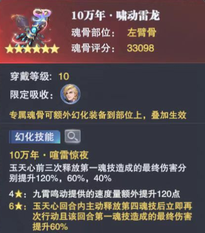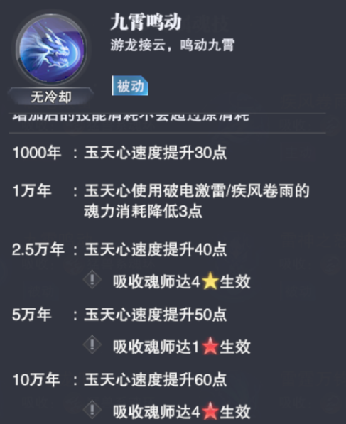 原本玉天心2-1被动【九霄鸣动】提升的速度为60点,而专属魂骨4星的效果可以额外提升120点,相当于直接给了玉天心180点的速度提升......这个提升量对于一位强攻系魂师来讲,大家可以思考下是个啥幅度......太可怕了,这也可以很大概率保证玉天心在队伍中可以拿到一速或更高的行动次位。