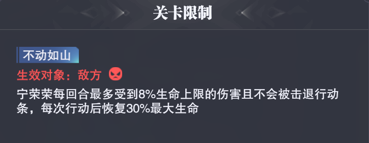 接着针对新版本宁荣荣的试炼演武,大家可以参考的打法就是利用猫或者SP千仞雪的快速行动攻击来尽量用最短的回合数消耗对方宁荣荣的血量,另外上个弗兰德的用意是可以使用1-2对宁荣荣进行【禁疗】,这样的打法和阵容还是比较稳的,大家可以参考一下。