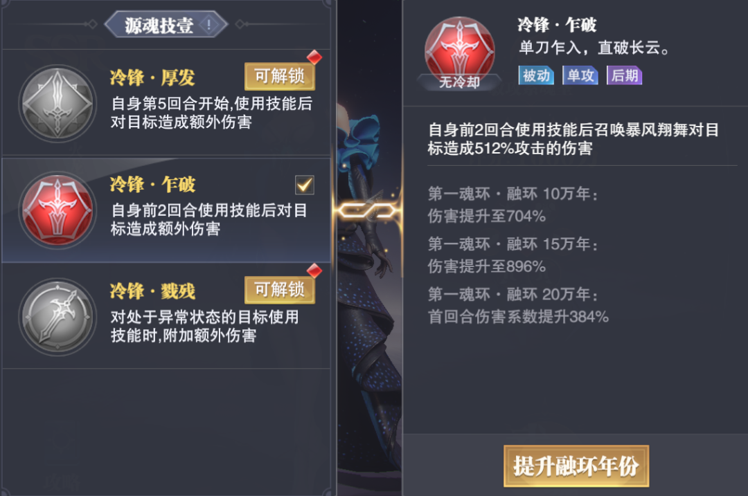 此外不同的源魂技在达到不同的融环年份后还会有额外的质变效果,所以接着我们就来说“融环”这个全新的系统: