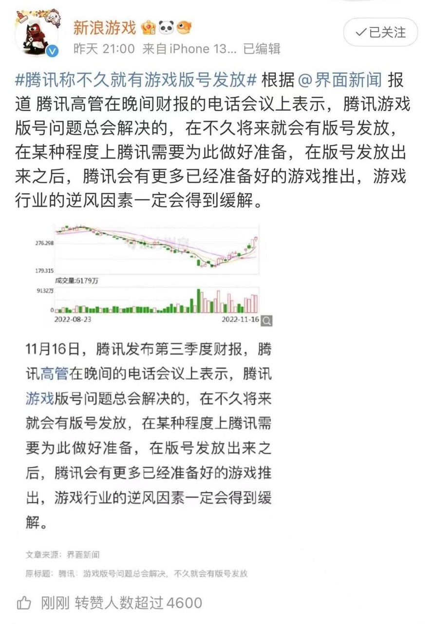 腾讯高管在晚间的电话会议上表示:腾讯游戏版号问题总会解决的,在不久将来就会有版号发放。在某种程度上腾讯需要为此做好准备,在版号发放出来之后,腾讯会有更多已经准备好的游戏推出,游戏行业的逆风因素一定会得到缓解。