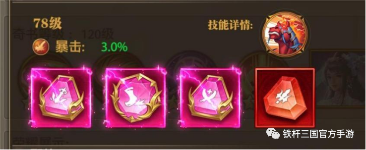 推荐使用速度,伤増,强化攻击宝石,暴击,2颗宝石技能推荐选择暴击3%,4颗宝石选择奔袭技能。