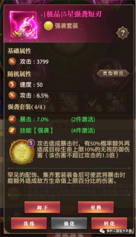 推荐强袭一套,暴击时有概率造成真实伤害,适合项羽这一类的武将,可以对敌方造成大量伤害,推荐配饰洗炼属性,速度,攻击百分比,攻击等。