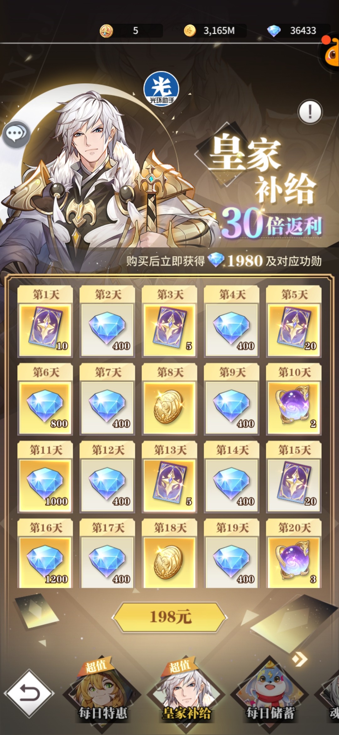 价格便宜,资源比较丰富,13天就能50自选镜灵碎片,幸运宝箱拼手气,运气好可得唐莲、红色八蛛矛、祈祷币。