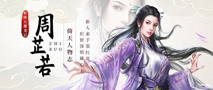 生平:周芷若幼时父亲周子旺(修订版、新修版改为汉水船夫之女,可能是考虑到老灭绝怎么会收留她所痛恨的明教教徒后人才进行了修改)遭元兵杀害,遇张三丰相救,与少年张无忌在汉水舟中邂逅,并对张无忌有喂饭之恩,后被送至峨嵋派。成年之后与张无忌重逢互生爱慕并立有婚约,为完师父灭绝师太遗命“光复汉家河山,光大峨嵋”取倚天剑、屠龙刀,后杀害张无忌表妹殷离(实际未死)并嫁祸蒙古朝廷爱慕张无忌的赵敏。成婚之际赵敏以谢逊毛发相胁使得婚礼生变,周芷若遂与张无忌决裂,回到峨嵋专心习武,一心完成师父遗愿光大峨嵋。屠狮大会,张无忌念情相让,周芷若以九阴真经上的武功赢得“武功天下第一”的称号并与张无忌并肩攻打少林金刚伏魔圈,为灭口欲杀害谢逊被杨龙后人黄衫女子所阻,最终与张无忌立下约定飘然洒脱而去。