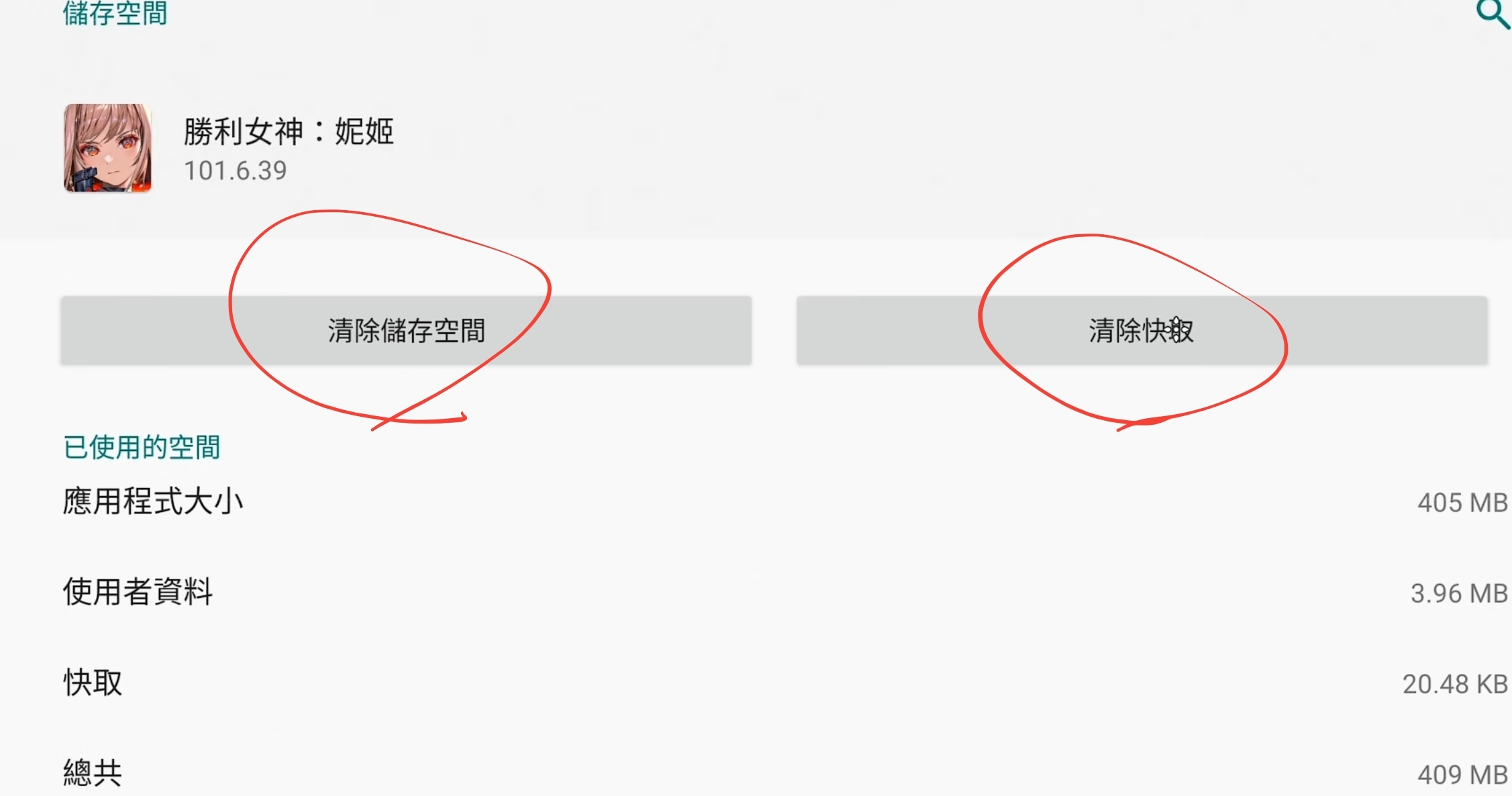 2,进入程序信息,找到nikke程序,选择清除缓存+清除存储数据