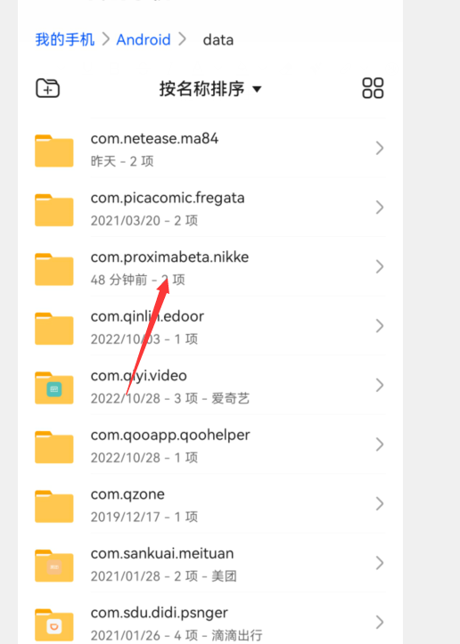 打开手机文件夹 找到这个文件 修改名字(任意即可),然后在手机 应用——清除应用数据 ,之后重新把上面的数据包名字改回来,进入游戏即可,不一定