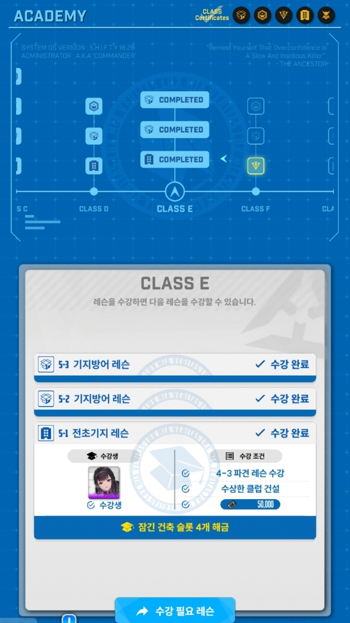 战术学院是主线故事3-6通关后,额外的设施中第一个解锁的。